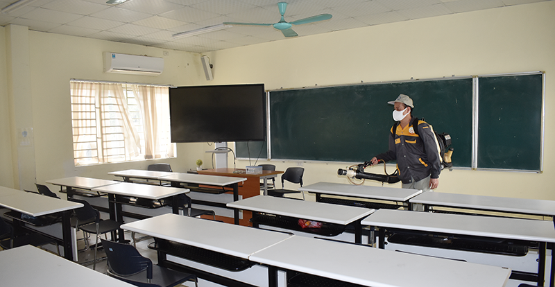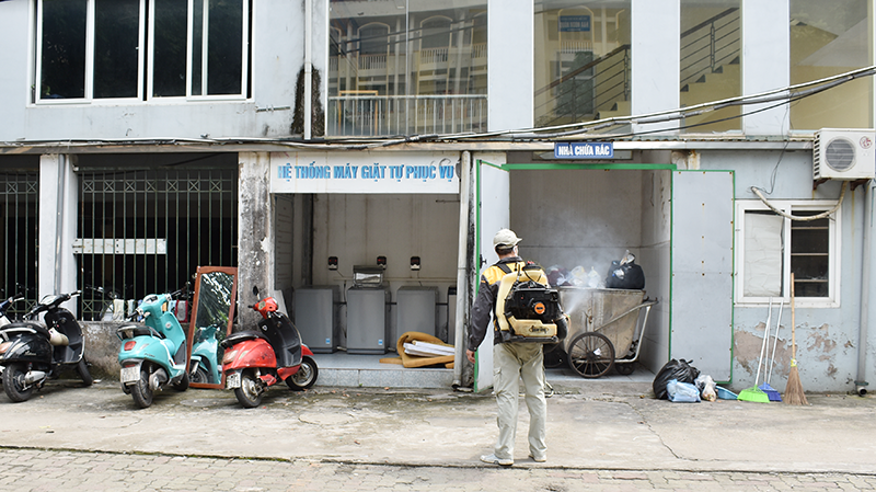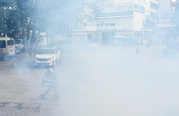 Vào chiều ngày 17/8, Bệnh viện Đại học Quốc gia Hà Nội đã phối hợp thực hiện đợt phun hóa chất tại nhiều địa điểm như Đại học Giáo dục, Bệnh viện Đại học Quốc gia Hà Nội, Ký túc xá Mễ Trì, và Trung tâm Thư viện và Tri thức số. Hoạt động này được triển khai tại các khu vực làm việc, giảng đường và khuôn viên ngoại cảnh, nhằm loại bỏ nguy cơ lây truyền bệnh tật.