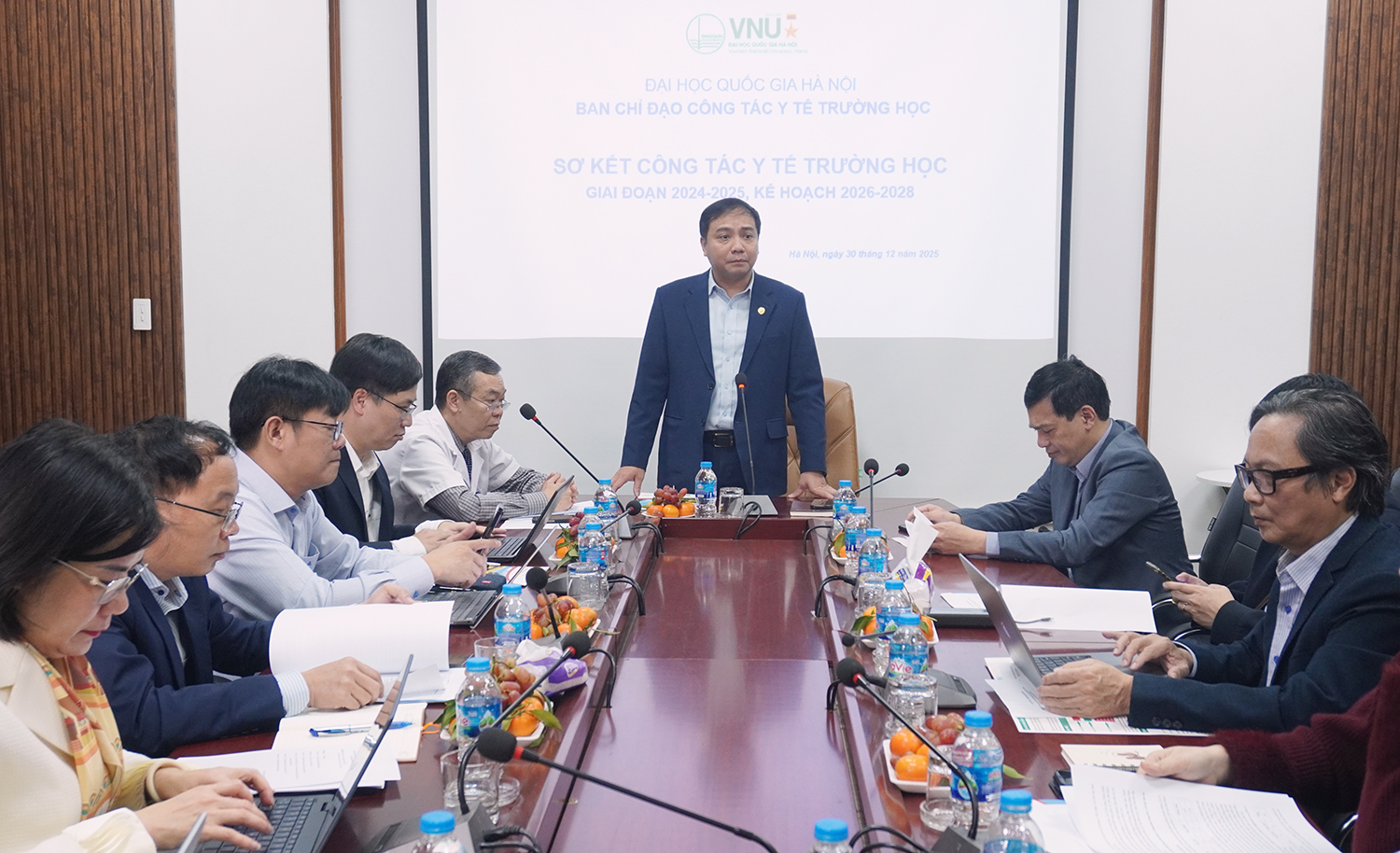 Để nâng cao công tác y tế trường học, trước đó tháng 11/2025, Giám đốc Đại học Quốc gia Hà Nội Hoàng Minh Sơn đã ký ban hành Quyết định 5646/QĐ-ĐHQGH về việc kiện toàn Ban chỉ đạo Công tác y tế trường học Đại học Quốc gia Hà Nội, với tổng cộng 26 thành viên trực thuộc.